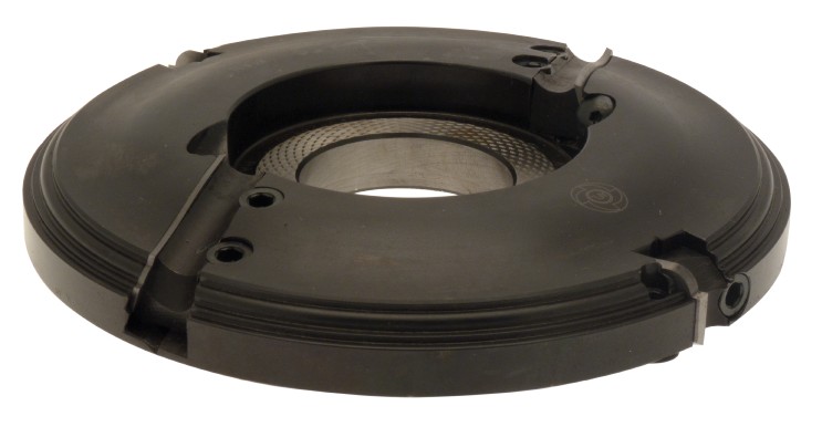 P.O. à profiler à plaquettes HW Plate-bande Profil B (Doucine + congé) Ø180 d50 Z2+2 Biaise négative Rot.Droite Tr.Dessus