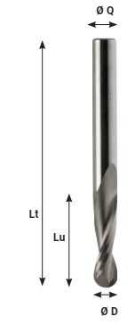 - Mèche à profiler HWM Hémisphérique R1.5 Ø3 LC.10 LU.10 LT.50 Q3 Z2 Hél. Positive Rot.Droite